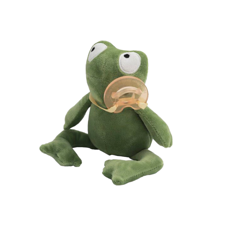 Frøen er fremstillet i 100 % polyester, og kommer med sin helt egen sut af naturgummi, så barnet også selv kan tage den i munden. Frø kan ledsage dig på alle eventyr, for han kan nemlig vaskes ved 30 grader, og blive så god som ny igen.