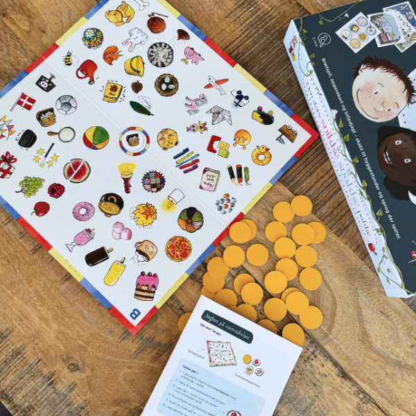 Når du åbner den store æske finder du bl.a. et brev fra psykolog Ina Haller, der gør dig klogere på den gode samtale og hvordan du støtter dit barns sprog på en nærvende og spirende måde. Pakken indeholder også en veludført spillevejledning, hvor alle spil og lege beskrives med både tekst, tegninger og tips.